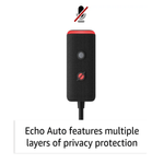 ¿Qué incluye en la caja?: Echo Auto (2.ª generación) con micrófono y módulos de parlantes incluidos, cable enrollado, soporte adhesivo de montaje para vehículo, sticker adhesivo adicional, paño de limpieza, cable auxiliar de 3.5 mm y cargador de carga rápida.