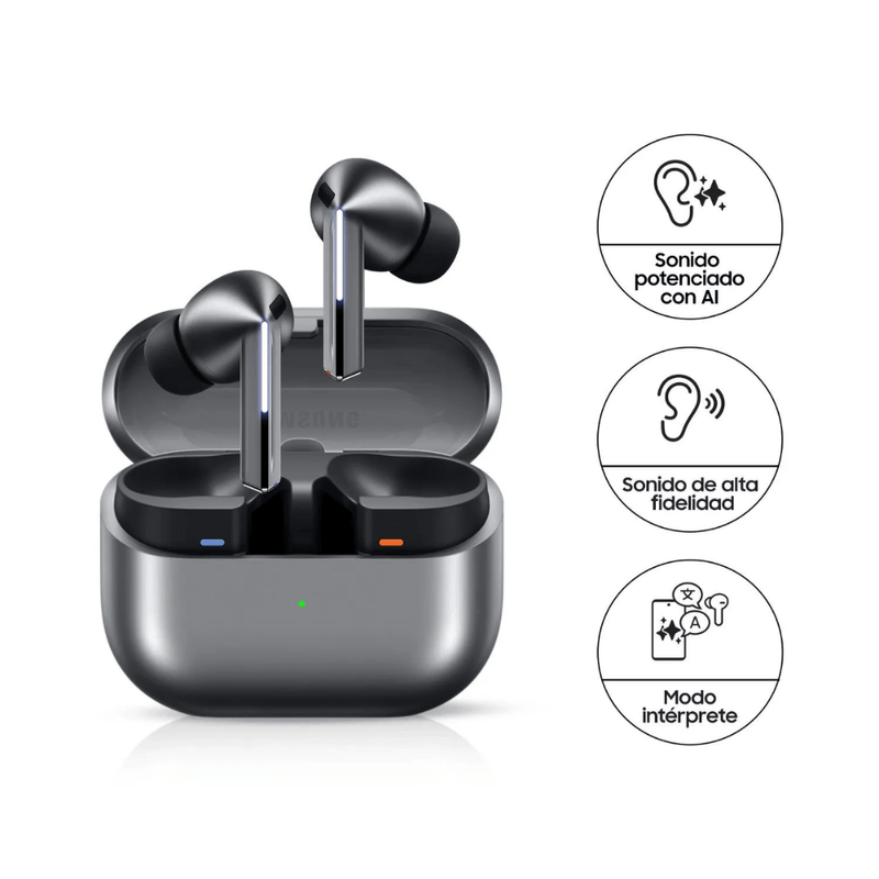 Los audífonos Samsung Galaxy Buds 3 Pro ofrecen una experiencia de audio envolvente con calidad de sonido premium. Su diseño ergonómico tipo canal brinda un ajuste cómodo y seguro, mientras que su tecnología Bluetooth avanzada garantiza una conexión rápida y estable.