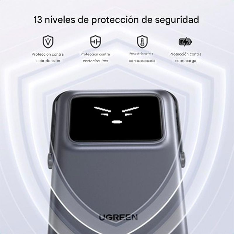 Energía confiable en todo momento: La batería magnética Ugreen PB572 de 10000 mAh ofrece carga inalámbrica de 7.5W, asegurando un suministro estable y eficiente para tus dispositivos.