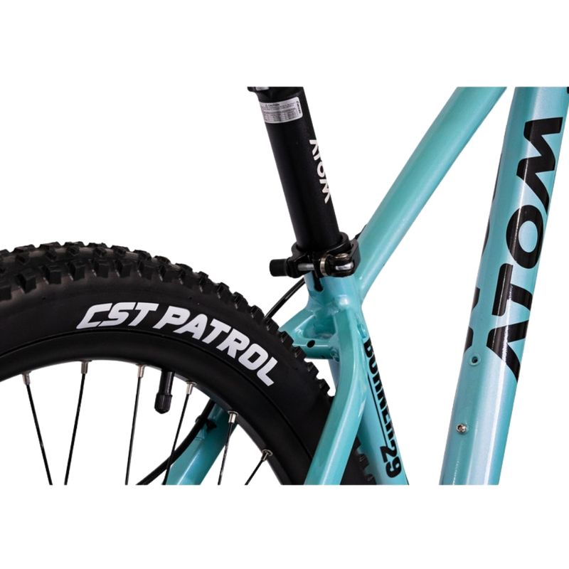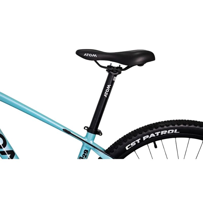 Las llantas CST y las mazas ATOM completan un conjunto de componentes de alta calidad que, junto con el cuadro de aluminio y cableado interno, garantizan seguridad y confiabilidad. La ATOM Burner 29” menta gloss es ideal para ciclistas que buscan rendimiento, confort y durabilidad en cada aventura. Cada elemento está diseñado para ofrecer estabilidad, control y diversión, haciendo que cada salida de montaña sea segura y emocionante para ciclistas de todos los niveles.