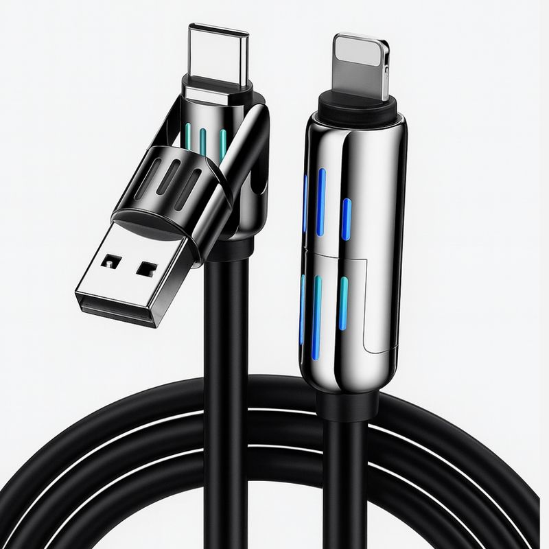 El cable Vivibox 4 en 1 es la solución ideal para mantener todos tus dispositivos cargados con un solo accesorio. Incluye conectores USB, Tipo-C y Lightning, compatibles con smartphones, tablets y accesorios, ofreciendo una carga rápida y estable en todo momento.
