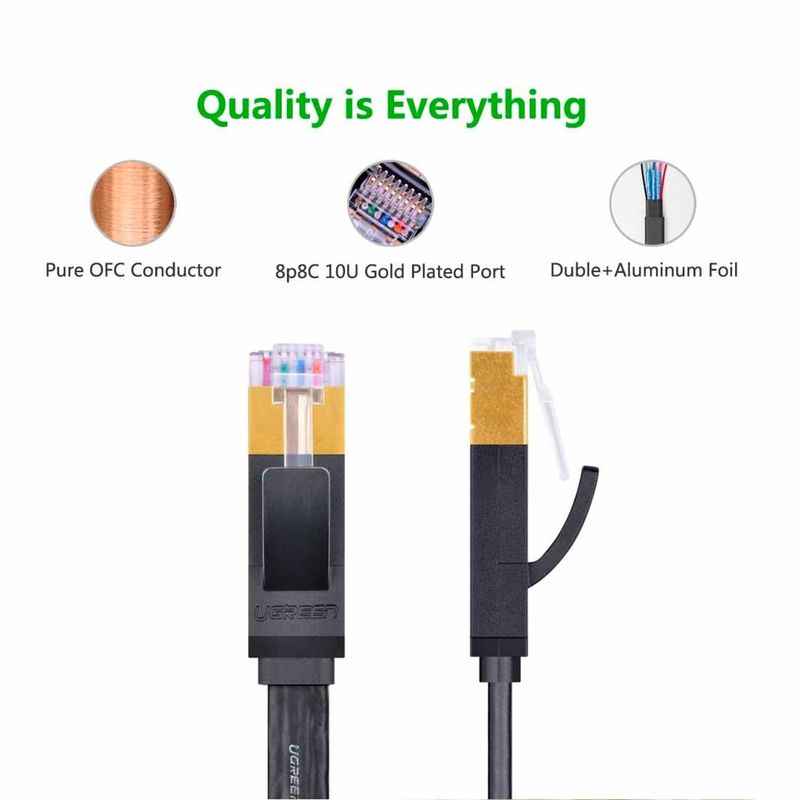 El cable Ethernet plano Ugreen RJ45 Cat 7 ofrece conexión ultrarrápida y estable con una velocidad de hasta 10Gbps y ancho de banda de 600MHz. Ideal para redes domésticas, consolas gaming, Smart TV o dispositivos de oficina que requieren rendimiento máximo.