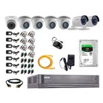 Kit de seguridad Hikvision 1 cámara Domo (micrófono incorporado) 1080P + 4 cámaras Domo Turbo 720P + 2 cámaras Tubo Turbo 720P + dvr + disco 1TB