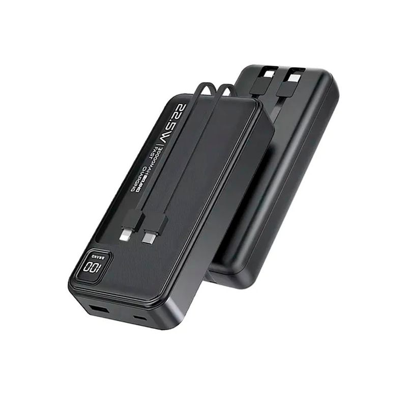 Su capacidad de 15 000 mAh permite recargar varias veces smartphones, tablets o audífonos, asegurando energía constante sin depender de enchufes. Cuenta con doble salida USB-C y Lightning, ofreciendo compatibilidad con equipos Android y Apple, sin necesidad de adaptadores. Gracias a su sistema de carga rápida, reduce significativamente el tiempo de espera, tanto al cargar tus dispositivos como al recargar el propio power bank.