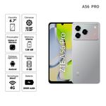 El ZTE A56 Pro en color gris combina elegancia y practicidad en un smartphone confiable para el día a día. Su amplia pantalla de 6.75” HD+ ofrece imágenes claras y colores vibrantes, ideales para series, juegos y redes sociales.