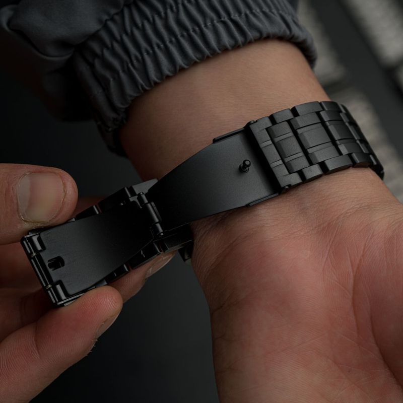 Ideal para quienes buscan estilo y durabilidad, la correa Urvoi Keepwin de titanio negro eleva la apariencia de tu reloj sin sacrificar comodidad. Perfecta para acompañarte tanto en reuniones como en tus aventuras diarias.
