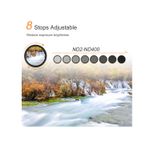 Su sistema variable de 8 pasos permite ajustar fácilmente la cantidad de luz que entra en el lente, logrando efectos suaves y naturales en agua, nubes o luces urbanas. Fabricado con cristal óptico japonés multicapa, garantiza imágenes nítidas y sin reflejos indeseados.