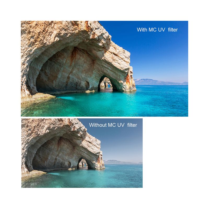 El filtro ultravioleta K&F Concept MCUV Blue Coat Slim de 58 mm bloquea los rayos UV que pueden afectar la nitidez y el color de tus fotografías, eliminando el tono azulado en escenas al aire libre. Además, actúa como protector del lente frente a polvo, rayones y salpicaduras.