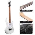 El pack Ibanez Gio GRX20 White con amplificador Orange Crush 12W es la opción ideal para quienes buscan su primera guitarra eléctrica con calidad profesional, excelente sonido y un diseño clásico. La Ibanez GRX20 destaca por su cómodo cuerpo tipo Super Strato, acabado blanco brillante y configuración de pastillas dobles Infinity R Humbucker, que ofrecen un tono potente para distintos estilos musicales. Su mástil de arce y diapasón de jatoba garantizan una ejecución cómoda y fluida, ideal para principiantes y estudiantes.