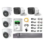 Kit de seguridad Hikvision 3 cámaras Domo (audio incorporado) 1080P + 2 cámaras Tubo (audio incorporado) 1080P + dvr + disco 2TB