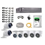 Kit de seguridad Hikvision 3 cámaras Domo (audio incorporado) 1080P + 2 cámaras Domo 1080P + 2 cámaras Tubo 1080P + dvr + disco 2TB