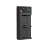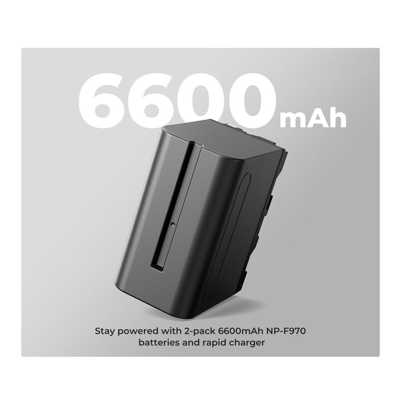 El cargador dual permite recargar ambas baterías al mismo tiempo con eficiencia y seguridad, evitando interrupciones durante el trabajo. Su diseño portátil y liviano lo hace perfecto para llevar a estudios, rodajes o viajes.