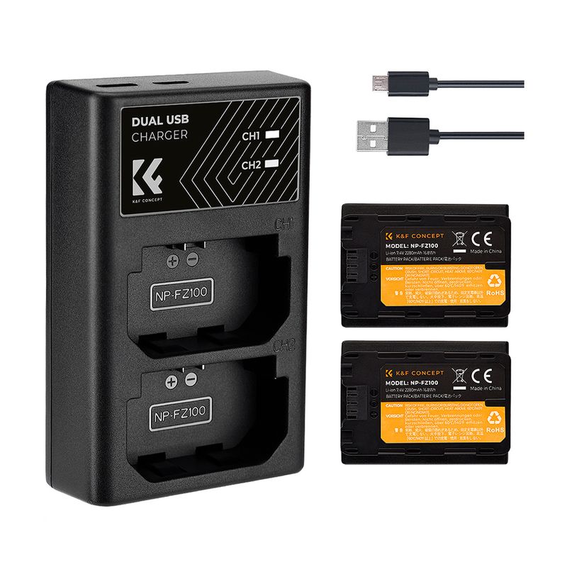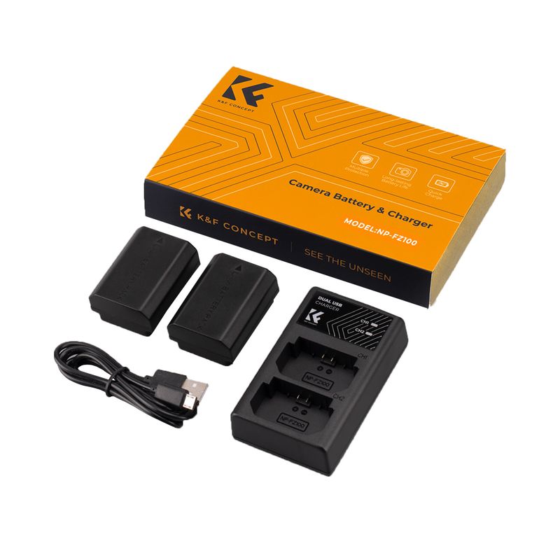 El kit K&F Concept KF28.0016 incluye dos baterías recargables de alta capacidad y un cargador dual, compatible con cámaras Sony que usan el modelo NP-FZ100. Es la solución perfecta para fotógrafos y videógrafos que necesitan energía constante durante largas sesiones.