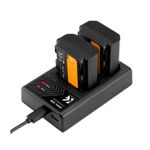 Las baterías ofrecen excelente autonomía y rendimiento estable, mientras que el cargador permite recargar ambas al mismo tiempo con conexión USB o adaptador de corriente. Su diseño compacto y ligero facilita transportarlo en cualquier bolso de cámara o mochila.