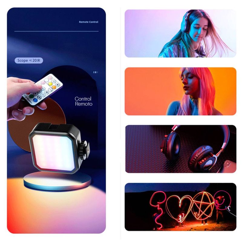 Su batería recargable de 2000mAh, con puerto USB-C que permite usarla mientras se carga, asegura sesiones continuas sin interrupciones. El ángulo de iluminación de 60° brinda una cobertura uniforme ideal para streaming, videollamadas, grabaciones, maquillaje o contenido profesional. Además, incluye control remoto para ajustar modos, colores y brillo sin tocar la luz directamente.