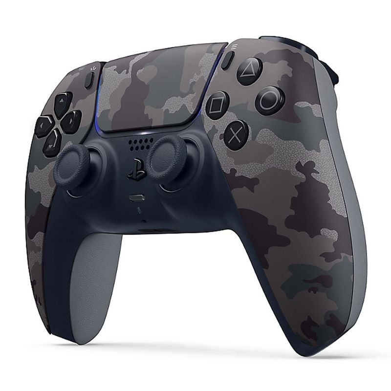 El mando DualSense gris camuflaje ofrece las innovaciones de PS5 en un diseño único y llamativo.