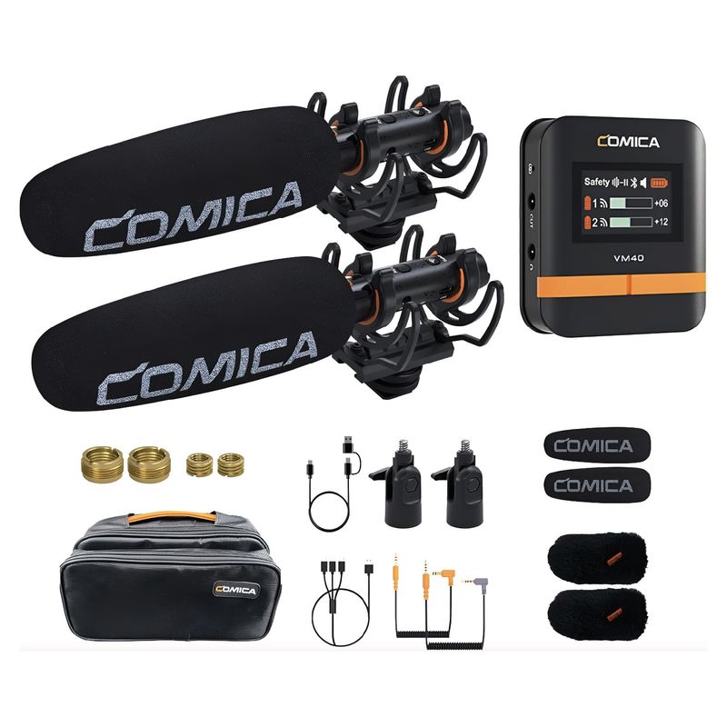 El Comica Audio VM40 Combo es un micrófono de escopeta inalámbrico de 2.4 GHz que ofrece una calidad de audio profesional ideal para entrevistas, podcasts, grabaciones y vlogs. Su patrón polar supercardioide captura el sonido de forma direccional, reduciendo eficazmente el ruido ambiental para lograr voces más limpias y naturales, incluso en entornos ruidosos.