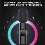 Incluye función de carga simultánea, permitiendo conectar el micrófono mientras el iPhone se carga, asegurando sesiones continuas sin interrupciones. Compacto, ligero y fácil de usar, el K11 es una herramienta esencial para creadores que buscan mejorar la calidad de su audio sin equipos complicados.