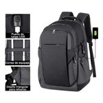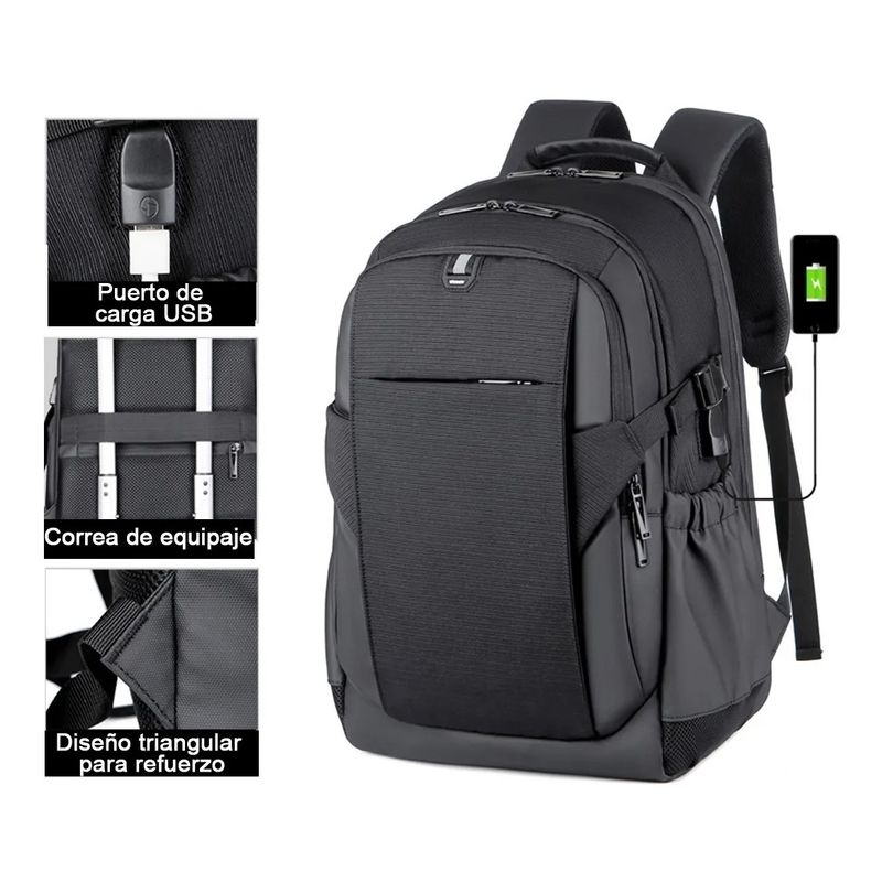 Equipada con un práctico conector USB, esta mochila te permite cargar tus dispositivos mientras te mueves, manteniendo tu conectividad siempre activa. Sus múltiples compartimientos están diseñados para organizar tus pertenencias de manera sencilla y eficiente, mientras que el compartimento acolchado protege tu laptop de golpes o rayaduras, ofreciendo seguridad adicional en tus jornadas diarias.