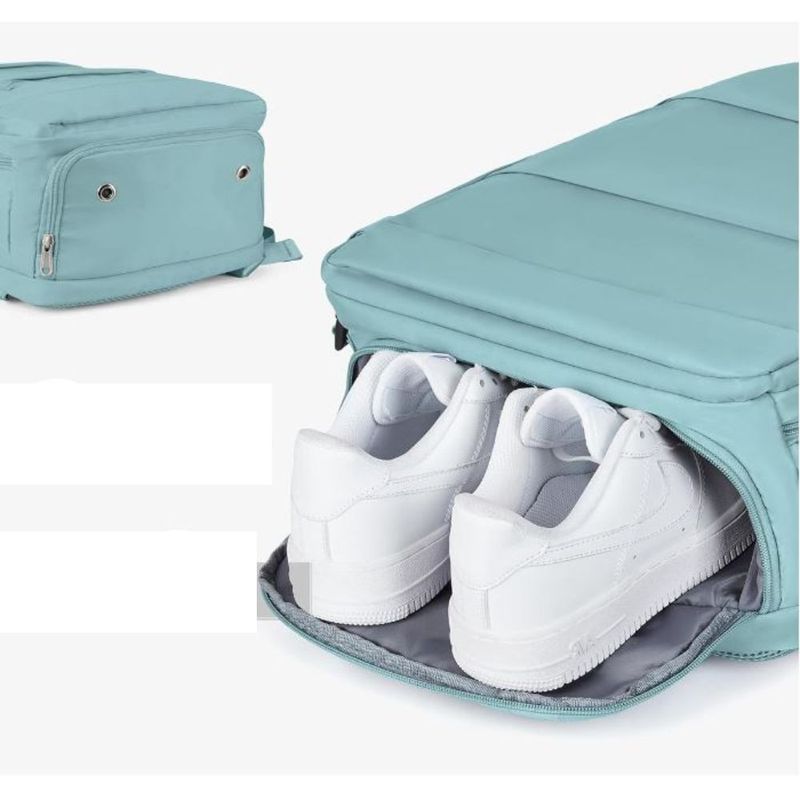 Cuenta con un diseño multifuncional y espacioso, con dos bolsillos principales, compartimentos dobles para laptop, y múltiples bolsillos para una organización eficiente. Incluye un compartimento independiente para calzado y una bolsa húmeda, perfectos para separar ropa mojada o deportiva. El puerto USB integrado te permite cargar tu celular fácilmente en movimiento.