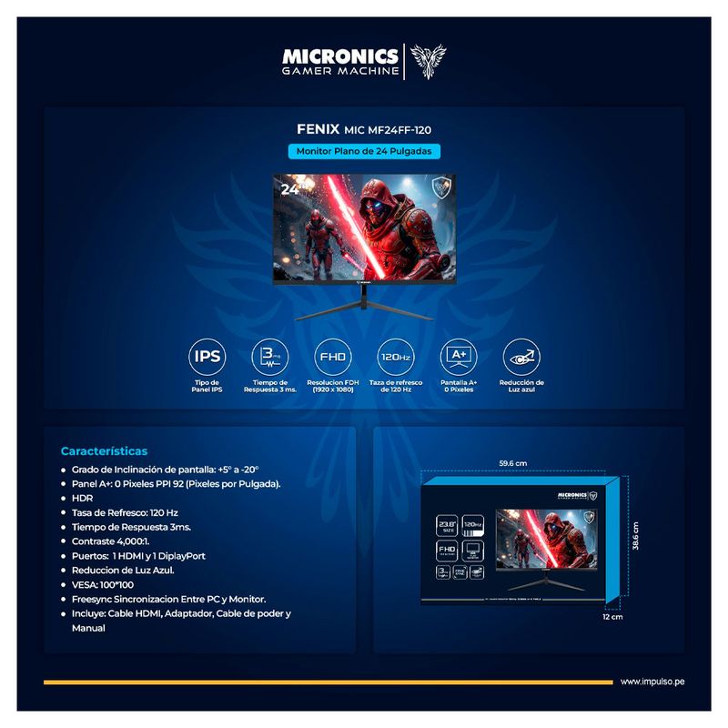 Con una tasa de refresco de 120Hz y un tiempo de respuesta de solo 3ms, este monitor asegura transiciones rápidas y suaves, reduciendo el desenfoque en escenas de acción o multitareas intensivas. Además, la tecnología FreeSync sincroniza la tarjeta gráfica y el monitor para evitar cortes e interrupciones, ofreciendo una experiencia de juego más estable. Incorpora funciones de reducción de luz azul, que disminuyen la fatiga ocular y permiten sesiones prolongadas sin molestias, siendo perfecto para quienes pasan largas horas frente a la pantalla.