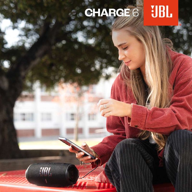 El parlante Bluetooth JBL Charge 6 en color negro combina potencia, resistencia y autonomía para ofrecerte la mejor experiencia musical en cualquier lugar. Con 40W de salida de audio y la tecnología JBL Original Pro Sound, este dispositivo garantiza un sonido potente, claro y envolvente, ideal para fiestas, reuniones o actividades al aire libre. Su diseño robusto y portátil lo convierte en un aliado perfecto para quienes buscan calidad y practicidad en un solo equipo.