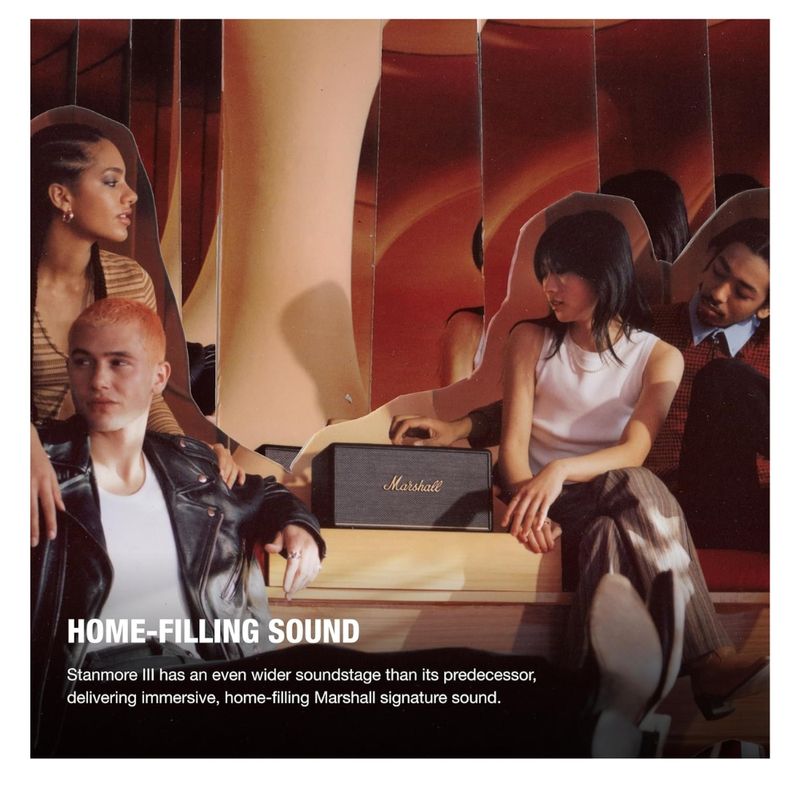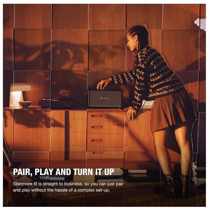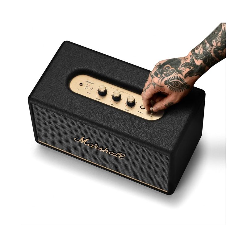 El parlante MARSHALL Stanmore III en color negro ofrece una experiencia sonora potente y equilibrada, ideal para quienes buscan audio premium en el hogar. Su filosofía “emparejar, jugar y encender” permite conectar dispositivos en segundos sin configuraciones complicadas, facilitando una experiencia rápida y directa. Esta nueva generación presenta un escenario de sonido estéreo más amplio, diseñado para ofrecer un audio envolvente y característico de MARSHALL, con mayor nitidez y profundidad en todas las frecuencias.