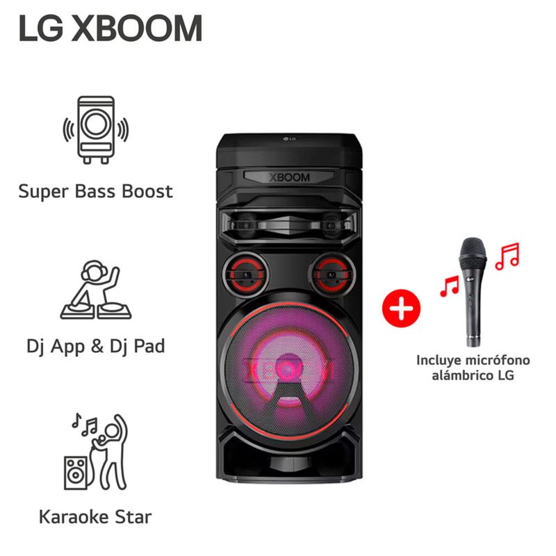 El parlante torre LG XBOOM RNC7 transforma cualquier reunión en una verdadera fiesta gracias a su potencia de 1000W y su sonido envolvente. Diseñado para ofrecer bajos profundos y agudos nítidos, brinda una experiencia musical impactante en interiores y exteriores. Su elegante acabado en color negro combina estilo y potencia en un solo equipo.