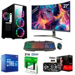 El monitor curvo de 27" Full HD proporciona una experiencia visual envolvente, mientras que el case gamer con iluminación RGB combina estética y ventilación eficiente. Incluye kit de teclado y mouse gamer 2 en 1, listo para usar desde el primer momento. Todas las piezas cuentan con 12 meses de garantía, ofreciendo confiabilidad y tranquilidad. Esta PC completa te permite dominar cualquier tarea con potencia, estilo y eficiencia, llevando tu experiencia de juego y trabajo creativo al siguiente nivel.