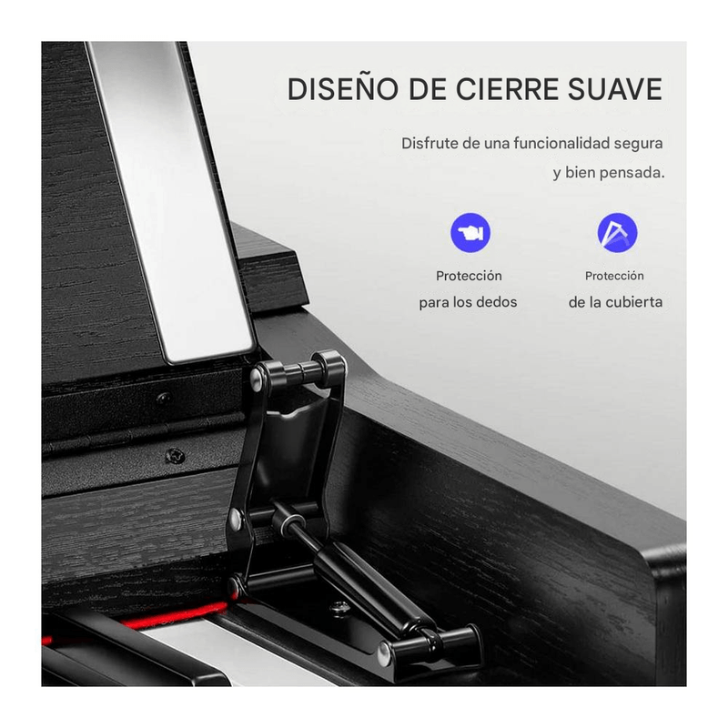 Su diseño con mueble moderno y tapa abatible suave combina elegancia y practicidad, encajando perfectamente en cualquier ambiente del hogar. Más allá de su estética refinada, ofrece robustez y comodidad para largas horas de práctica y estudio. Este piano digital une tecnología avanzada, estilo y pasión musical, convirtiéndose en la opción perfecta para quienes buscan un instrumento versátil, realista y adaptado a las necesidades del músico actual.