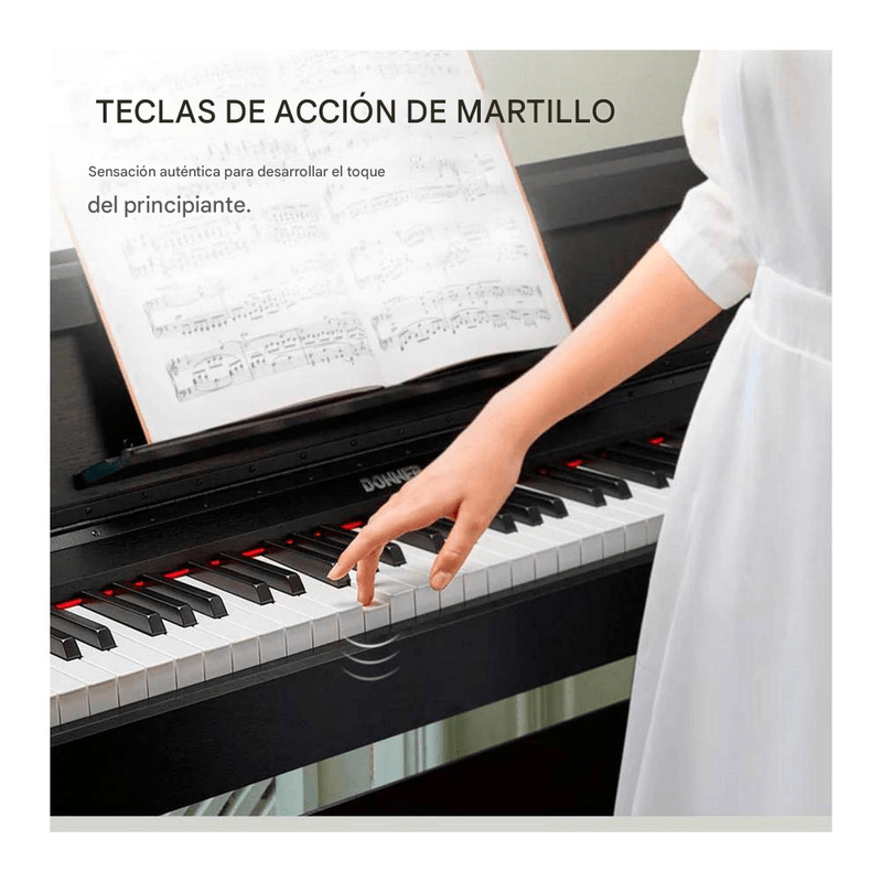 Este piano digital ha sido diseñado para ofrecer una experiencia auténtica y envolvente en cada interpretación. Sus 88 teclas con acción de martillo graduada y textura tipo marfil reproducen fielmente la sensación de un piano acústico, permitiendo a músicos principiantes y avanzados disfrutar de un toque natural y expresivo. Gracias a esta tecnología, cada matiz se transmite con precisión, mejorando la técnica y la sensibilidad al interpretar.