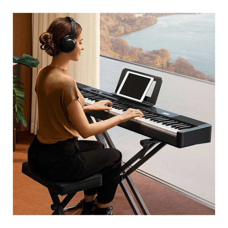 El piano digital Donner DEP-20 Lite de 88 teclas está diseñado para quienes buscan una experiencia realista y accesible desde el primer momento. Su teclado con acción de martillo ponderado y sensibilidad táctil ajustable simula con precisión la sensación de un piano acústico, ayudando a estudiantes y músicos en formación a desarrollar técnica, control y expresividad en cada interpretación. Este modelo combina practicidad y fidelidad sonora, siendo una herramienta perfecta para el aprendizaje y la práctica diaria.