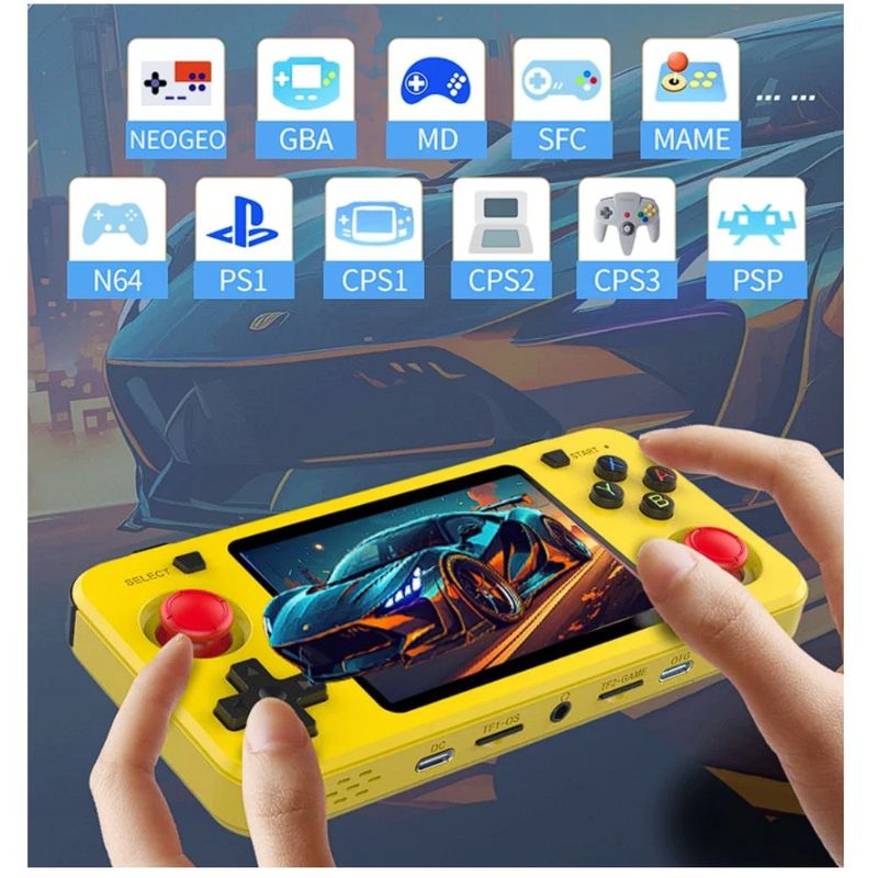 El diseño en color amarillo la hace llamativa, ligera y muy fácil de transportar. Es perfecta para viajes, pausas en la oficina o momentos de nostalgia en casa. La consola Retro R36H combina estilo, rendimiento y diversión en un solo dispositivo, convirtiéndose en una gran elección para coleccionistas y fanáticos del gaming clásico.