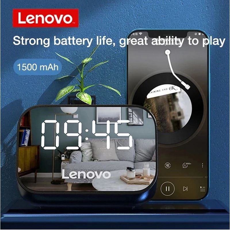 El color negro de este Reloj despertador con altavoz Lenovo le da un toque elegante y su batería está compuesta de ion y litio.