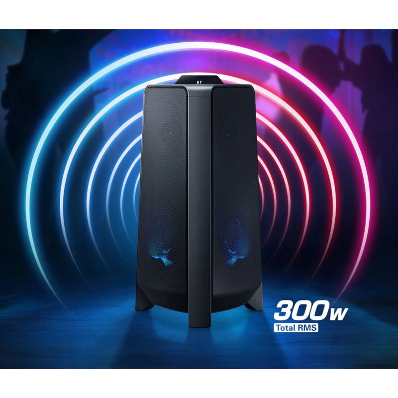 La torre de sonido Samsung MX-T40 ofrece una experiencia sonora envolvente gracias a su potencia de 300W y tecnología de sonido bidireccional. Perfecta para fiestas o reuniones, llena cualquier espacio con graves profundos y audio claro en todas las direcciones.