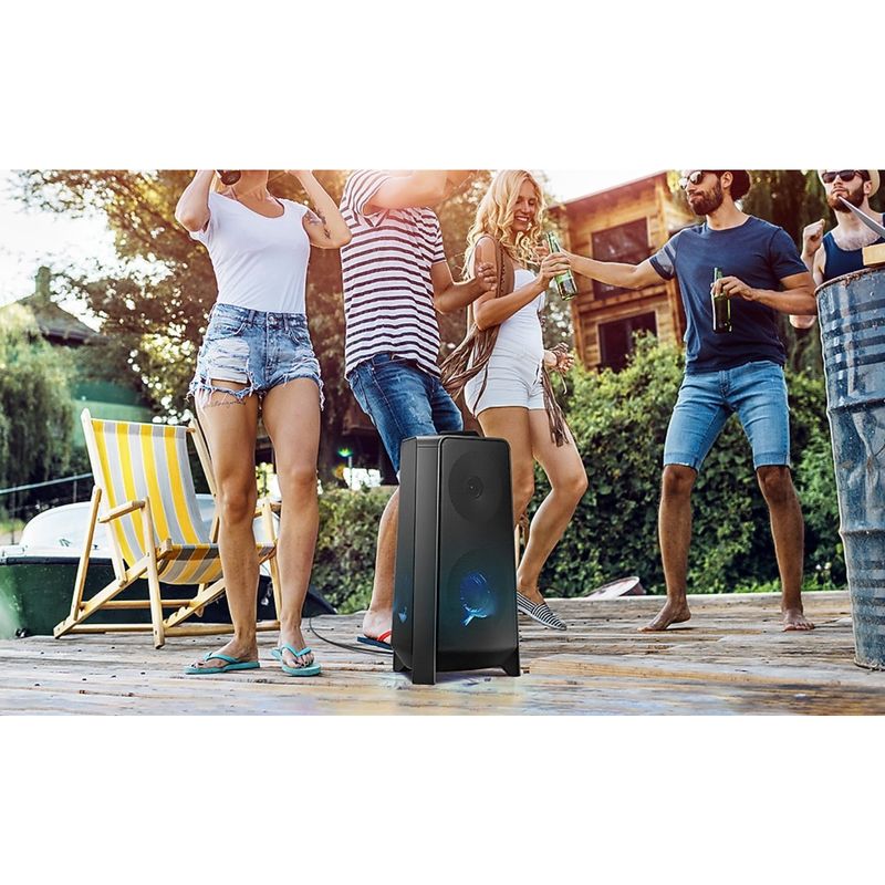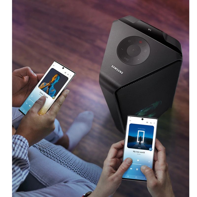 Equipada con luces LED que cambian al ritmo de la música, la Samsung MX-T40 combina potencia, estilo y diversión. Es la elección ideal para disfrutar de un ambiente vibrante y un sonido de calidad superior en cada evento.