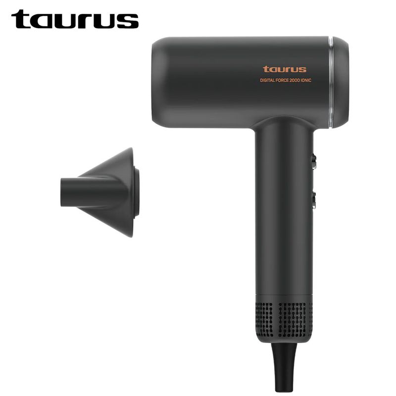 La secadora Taurus Digital Force 2000 Ionic ofrece potencia y tecnología avanzada para un secado profesional en casa. Con su motor digital brushless de 110000 rpm, genera un flujo de aire potente y constante, logrando resultados rápidos sin dañar el cabello.