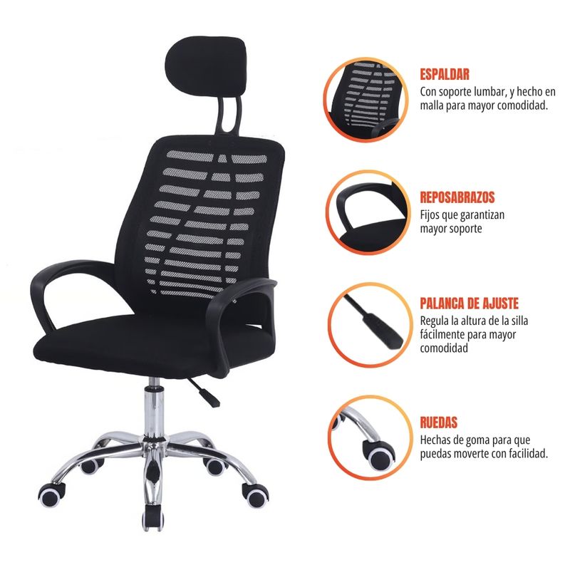 Mejora tu postura, reduce el riesgo de molestias y aumenta tu concentración con la Silla Ejecutiva DC-156. Ideal para quienes buscan combinar ergonomía, durabilidad y diseño moderno, esta silla es la elección perfecta para oficinas, hogares y estudiantes. Disfruta de un espacio de trabajo más cómodo y eficiente con la DC-156, y trabaja con total comodidad durante todo el día.