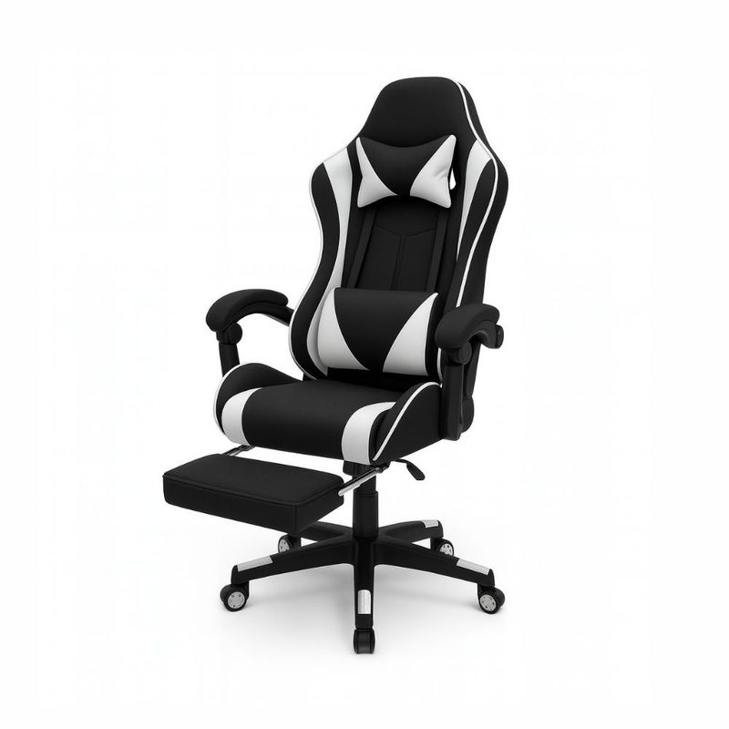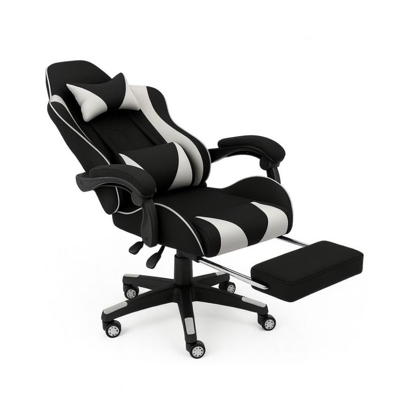 Equipada con respaldo reclinable hasta 135°, cojines lumbar y cervical removibles, y reposapiés extensible, la Silla Vortex se ajusta a tus necesidades para brindar máxima comodidad durante horas de uso. Sus posabrazos acolchados y su base de nylon reforzada con ruedas antirayaduras ofrecen estabilidad y movimiento fluido. Su diseño ergonómico ayuda a mantener una postura saludable, reduciendo la tensión muscular y la fatiga durante sesiones prolongadas de trabajo o juego.