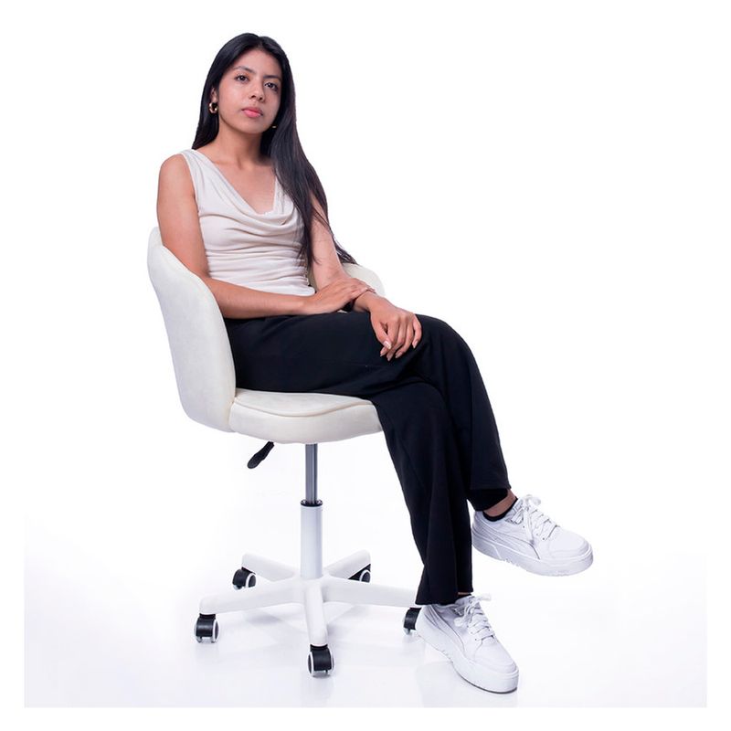 Su acabado en color rosado, junto con materiales resistentes y un sistema giratorio de 360°, la convierten en una opción moderna y práctica para oficinas y escritorios.