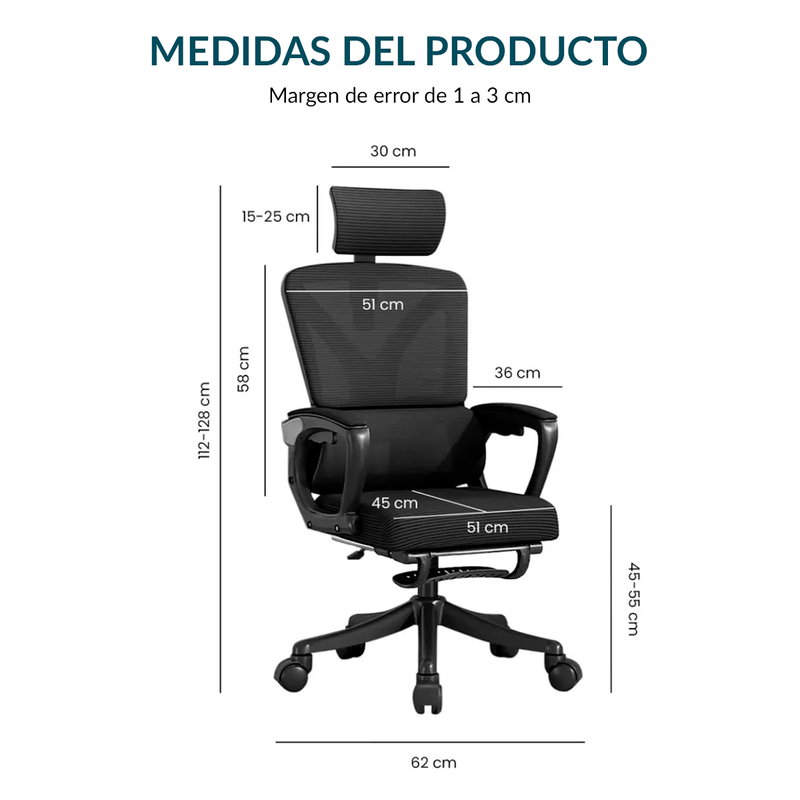 ¿Qué incluye en la caja?Respaldo, asiento, base o estrella, ruedas (5 unidades), pistón neumático, cubierta del pistón, reposabrazos, reposapies, mecanismo de ajuste, tornillos y herramientas, manual de ensamblaje