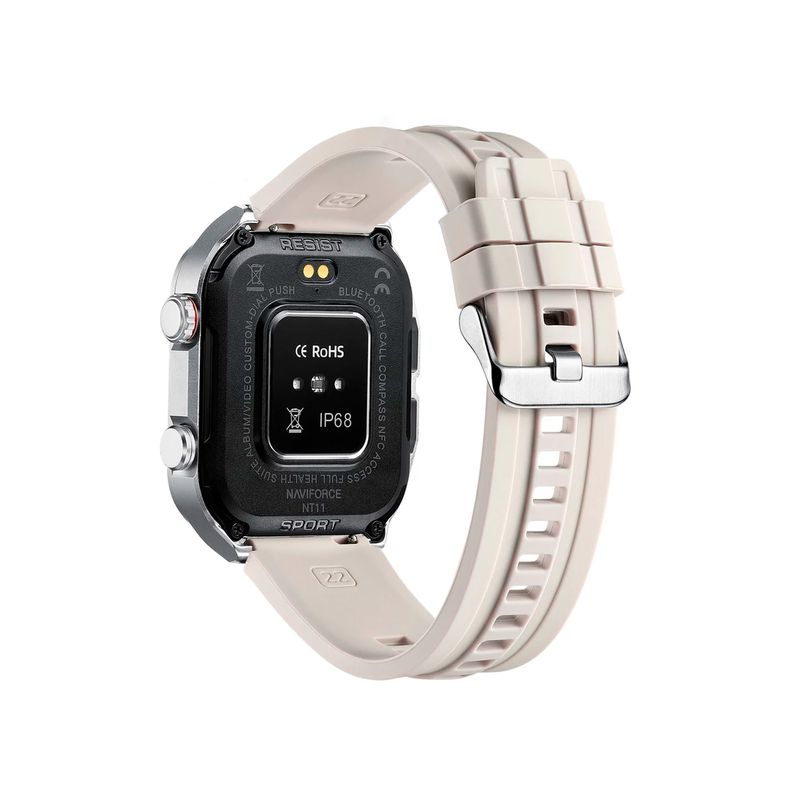 El Naviforce NT11 beige es un smartwatch versátil, cómodo y funcional que se adapta a cualquier ocasión. Ideal para quienes buscan un equilibrio entre diseño sofisticado, control de salud y desempeño deportivo en un solo dispositivo inteligente.