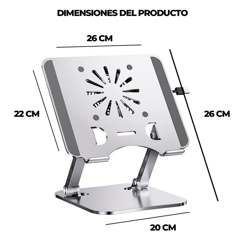 Su estructura metálica ofrece una base sólida y estable, mientras que las almohadillas antideslizantes mantienen tu dispositivo firme en todo momento. El sistema ajustable permite modificar la altura y el ángulo, adaptándose a tu postura ideal y protegiendo tu columna cervical. Gracias a su diseño ergonómico, favorece una posición más cómoda y saludable, reduciendo la fatiga visual y corporal.
