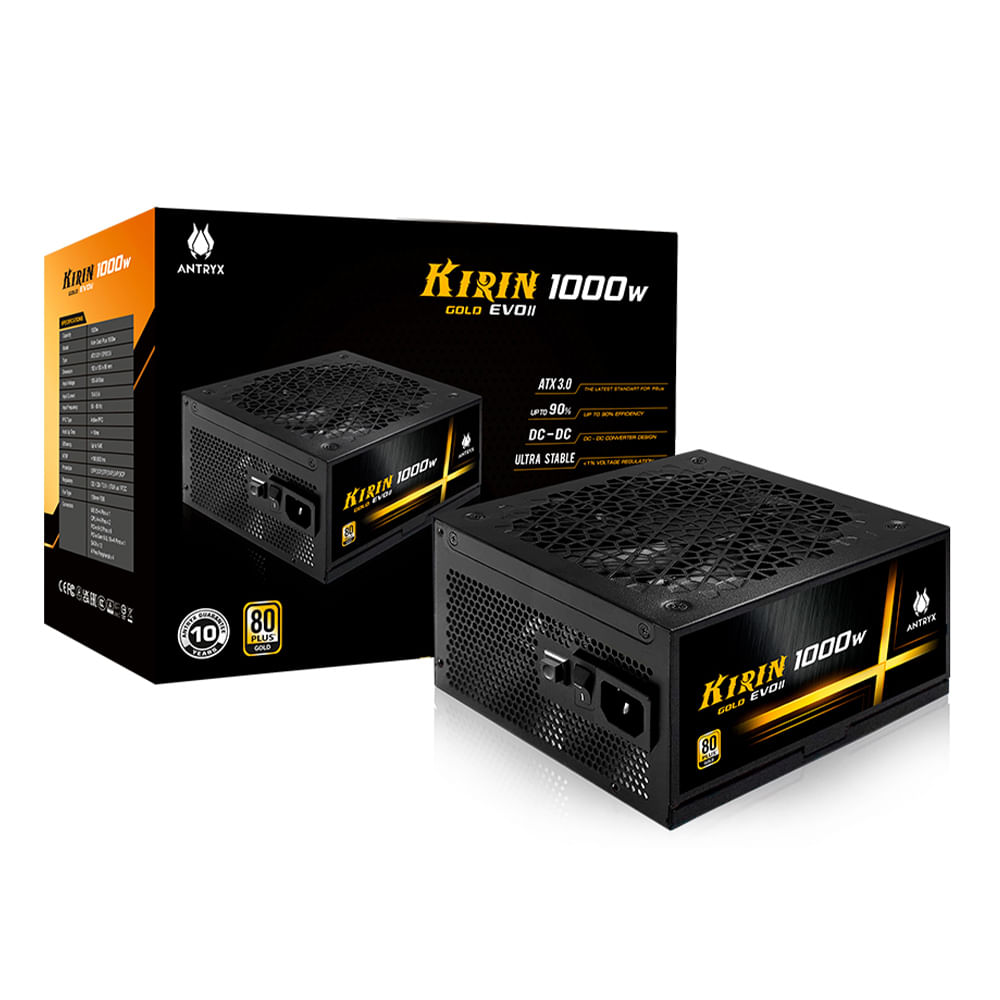 Fuente de poder Antryx Kirin Gold Evo II 1000W, 80 Plus Gold, modular ATV3.0, Pcie 5.0