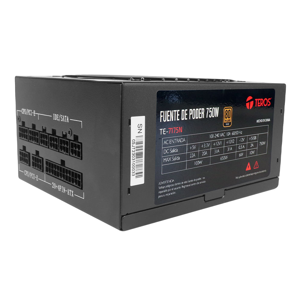 Fuente de poder Teros TE-7175W 750W, 80 Plus Gold, F. modular