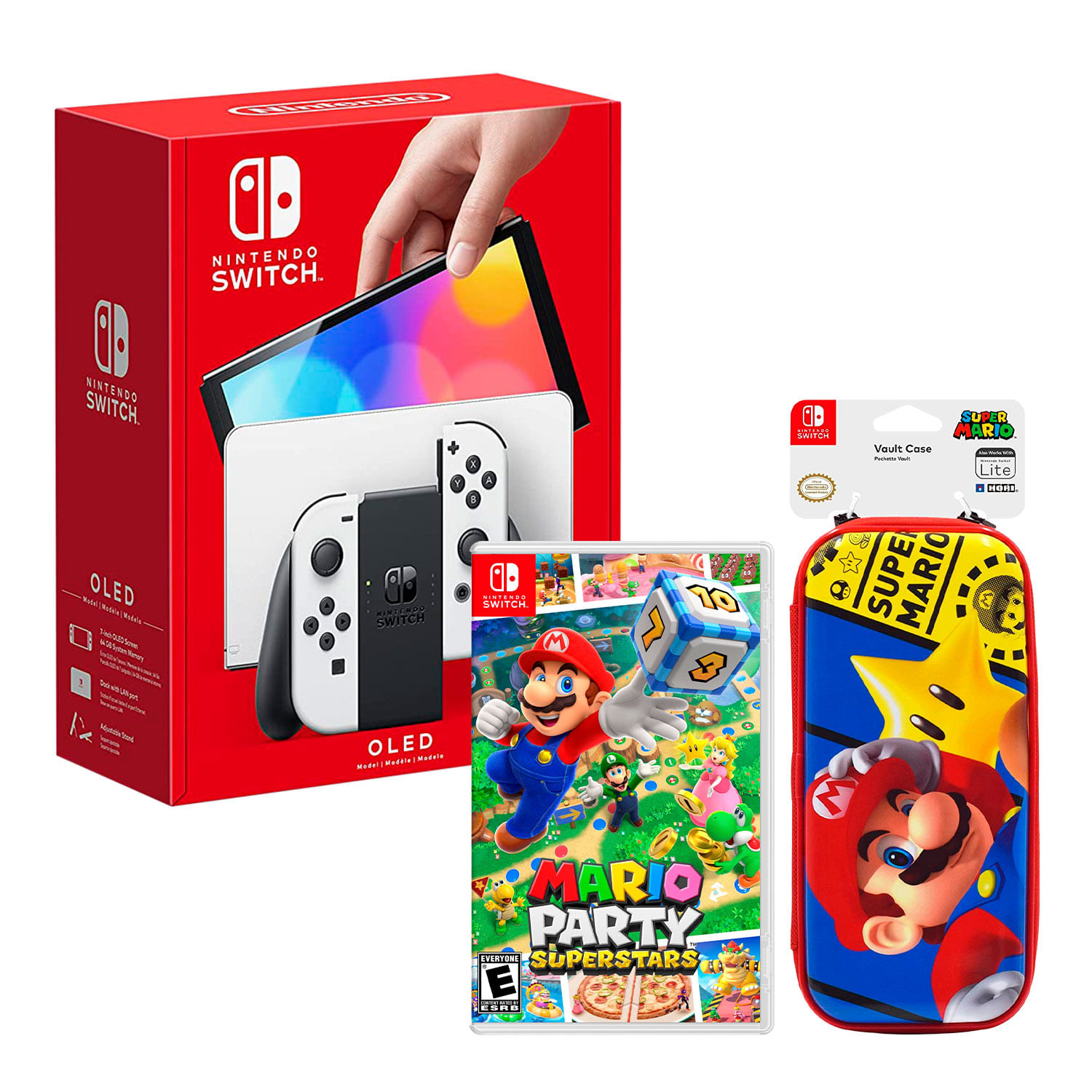 Consola Nintendo Switch Oled 64GB, blanco + Juego Mario Party Superstar + Estuche Super Mario