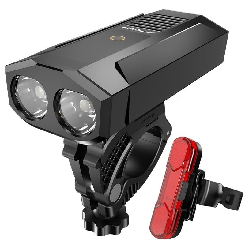 Luz de bicicleta X-Tiger QD-10011, 1800 lúmenes, resistencia al agua IPX5-IPX6, carga USB, 4 modos de luz