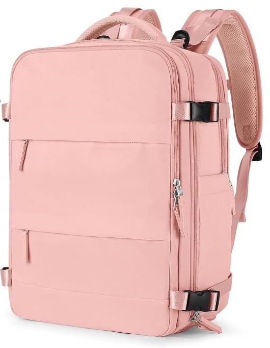 Mochila viajera de cabina, puerto USB, compartimentos múltiples, antirrobo, rosado