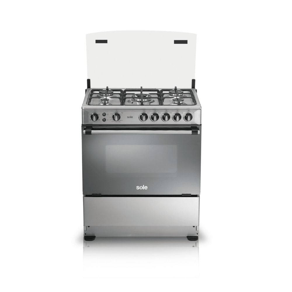 Cocina de pie Sole Dubai 76 cm, 103 litros, 5 quemadores, GLP/GN, plateado