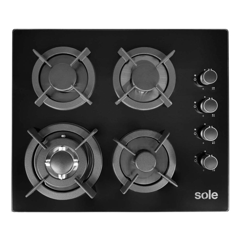 Encimera Sole S-SOLCO068 60 cm, vidrio templado, 4 quemadores, negro